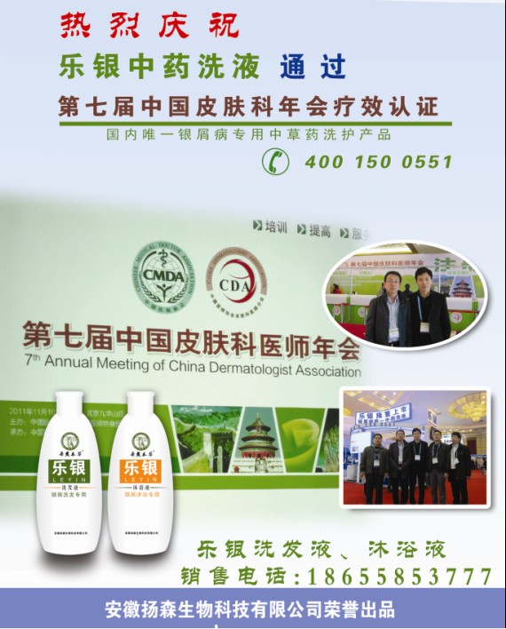 作為國內(nèi)唯一銀屑病專用中草藥洗護(hù)產(chǎn)品,熱烈祝賀樂銀系列中藥洗液通過第七屆中國皮膚科年會療效認(rèn)證。